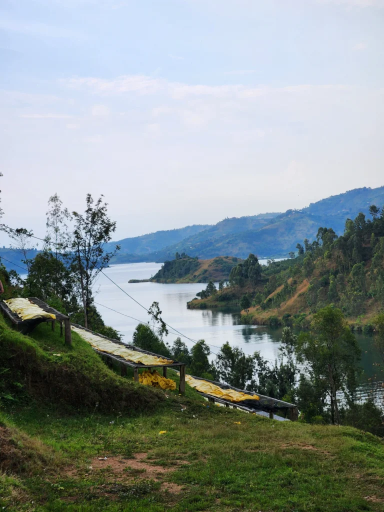 - Unikalny mikroklimat jeziora Kivu – chłodne wiatry i stabilne opady gwarantują idealne, powolne suszenie kawy naturalnej i washed.